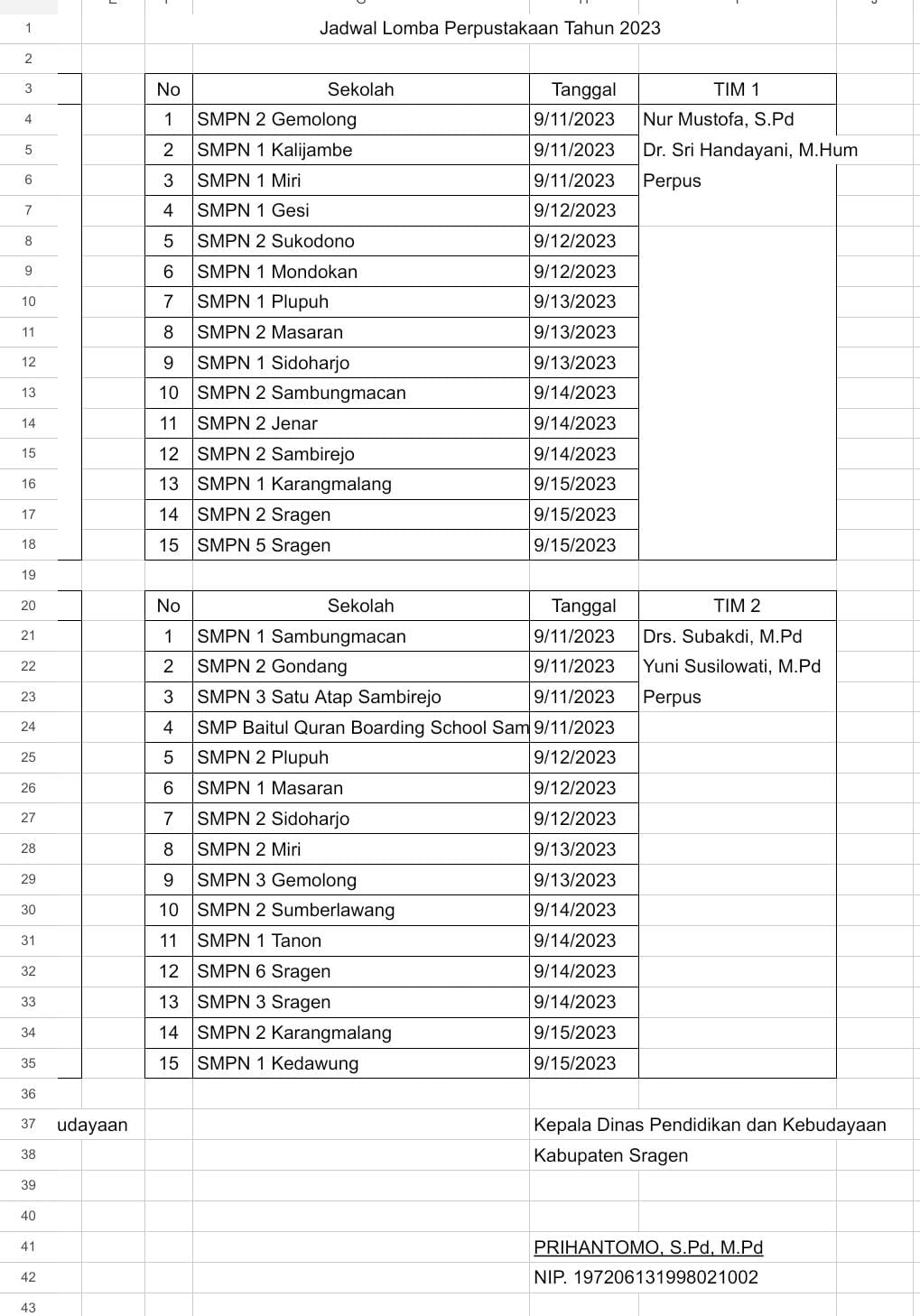 Lomba Perpustakaan Tingkat Kabupaten Sragen Tahun 2023 akan dilaksanakan mulai tanggal 11 - 15 September 2023
